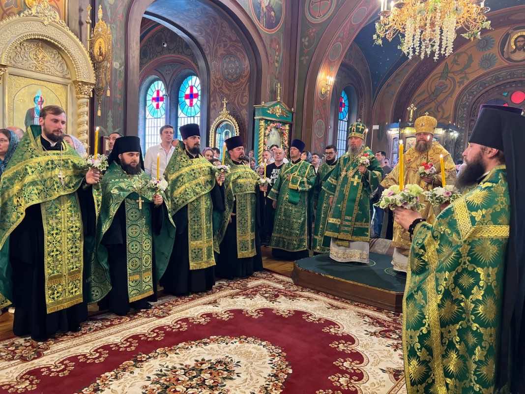 7 июня 2025 года, накануне праздника Святой Троицы, Пятидесятницы, митрополит Екатеринодарский и Кубанский Василий и архиепископ Салехардский и Ново-Уренгойский Николай совершили Всенощное бдение в Свято-Троицком соборе города Краснодара.
