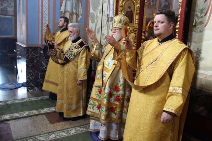 Его Высокопреосвященству сослужили личный секретарь протоиерей Владимир Кириченко, секретарь Екатеринодарской епархии, настоятель Георгиевского храма г. Краснодара протоиерей Илия Быстров, настоятель Покровского храма г. Краснодара протоиерей Геннадий Волков, настоятель Свято-Духова храма г. Краснодара протоиерей Сергий Лопасов, духовенство Екатеринодарской епархии.