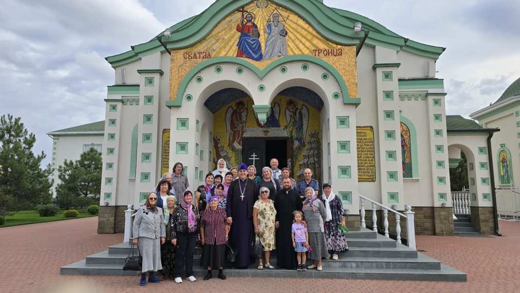 На память об этом знаменательном дне сделали общее фото, которое надолго сохранит в сердцах участников поездки светлые воспоминания о гостеприимстве динской земли и духовной радости совместной молитвы.