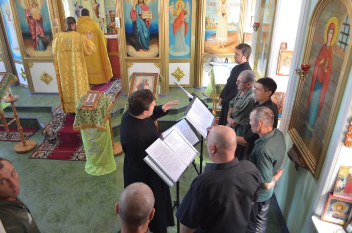 Песнопения и чтения на богослужении исполнили участники тюремного хора из осужденных