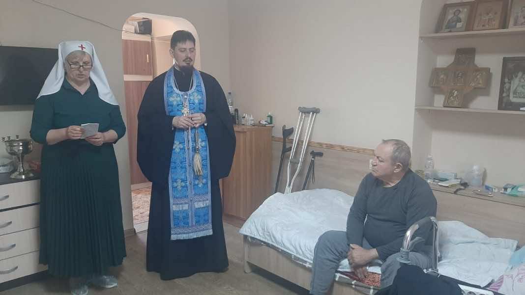 Сегодня, 7 апреля, штатный клирик Свято-Сергиевского храма города Краснодара протоиерей Константин Ланцев и сестра милосердия сестричества в часть прпп. Кирилла и Марии Радонежских Наталия Жилкина посетили подопечных геронтологического пансионата «Добрые сердца».