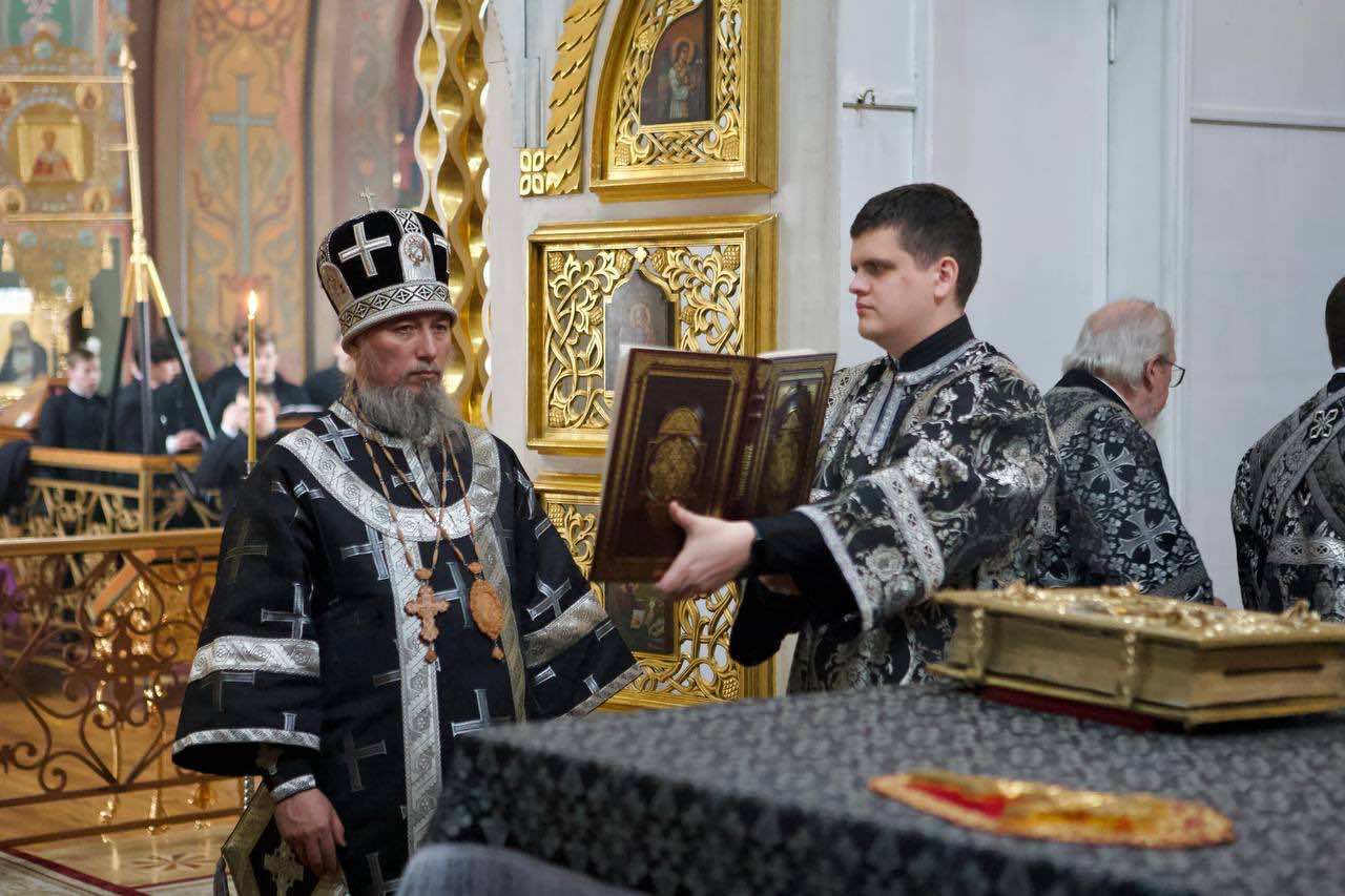 Его Высокопреосвященству сослужили: настоятель Свято-Троицкого собора иерей Максим Печёркин и духовенство собора.