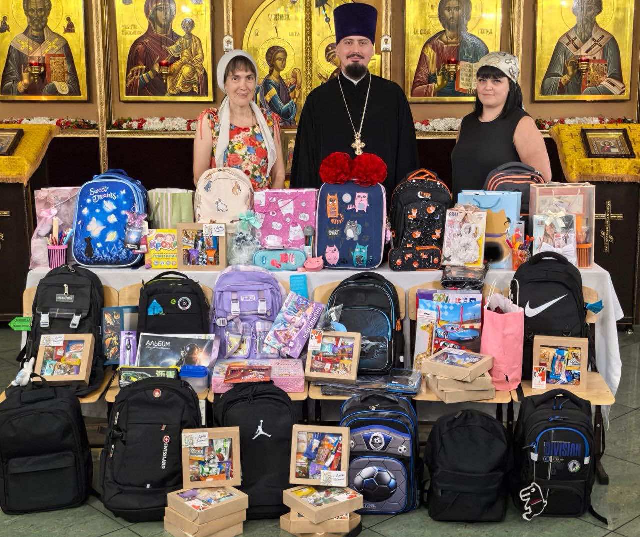 По благословению настоятеля храма преподобного Сергия Радонежского протоиерея Богдана Черных для детей, семьи которых попали в сложную жизненную ситуацию, усилиями прихожан храма были собраны 15 наборов. В наборы вошли: школьные ранцы, канцелярские товары, школьные принадлежности, сладкие подарки и детские православные молитвословы.