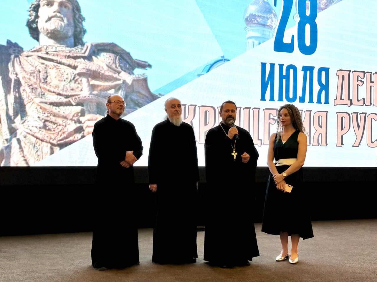 Перед началом сеанса к зрителям обратился настоятель храма Святого Духа протоиерей Сергий Лопасов. Отец Сергий поздравил собравшихся с великим праздником, рассказал об истории Крещения Руси и житии святого равноапостольного князя Владимира. Также вспомнили о Куликовской битве и легендарных монахах-воинах, вставших на защиту родной земли.