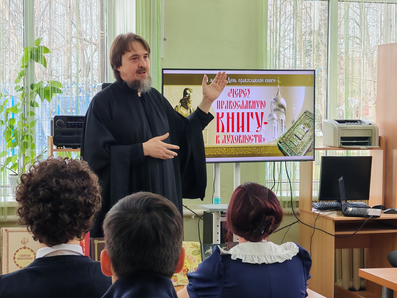 Разговор начался с истории — священник напомнил подросткам о том, как более четырех веков назад Иван Фёдоров положил начало русскому книгопечатанию, выпустив первую датированную книгу «Апостол». Однако главной темой встречи стало значение книги для современного человека.