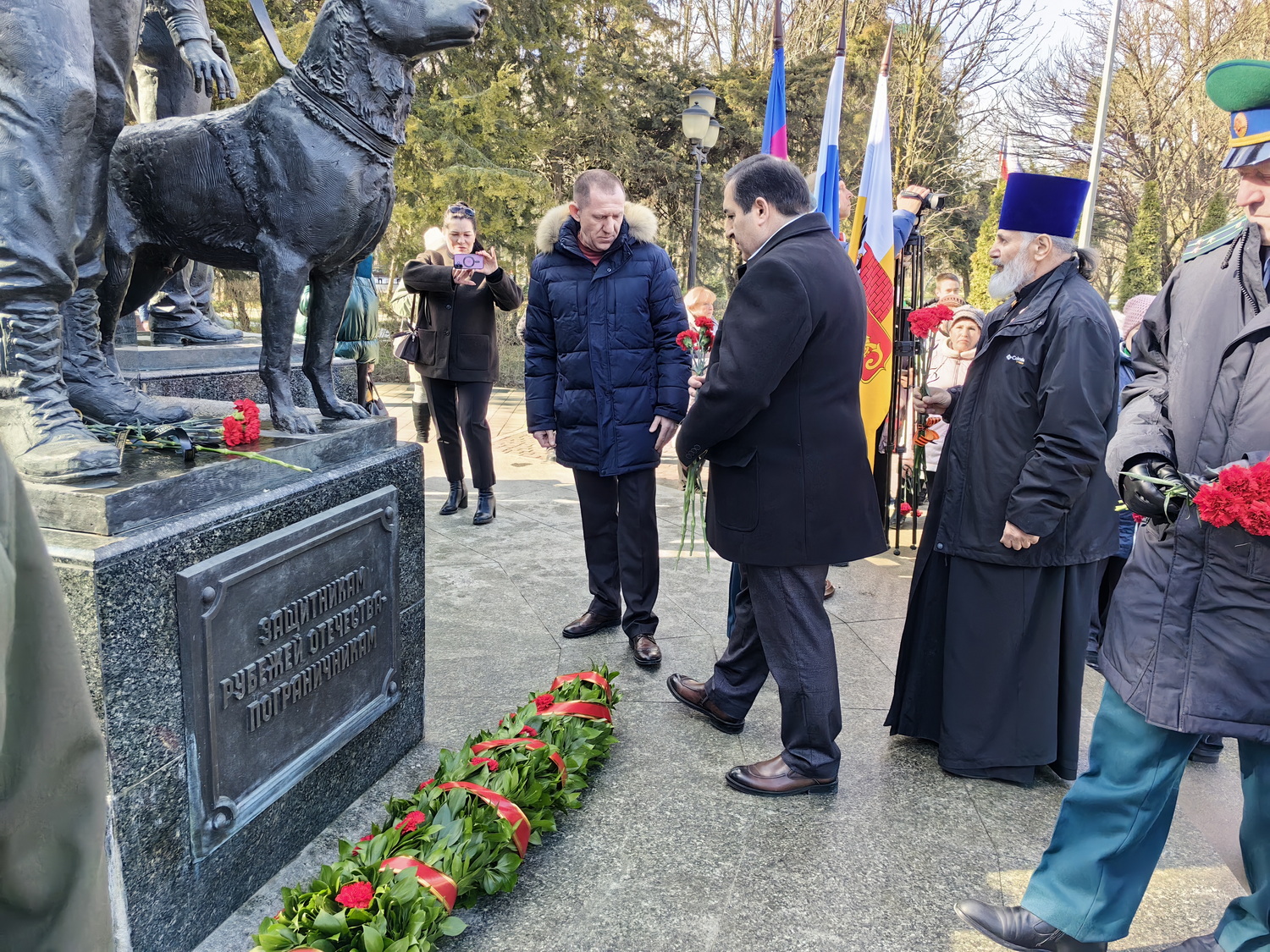 После в сквере Пограничников прошел митинг памяти. Протоиерей Александр вместе с почетными гостями мероприятия возложил цветы к монументу «Защитникам рубежа Отечества — пограничникам». Также во время митинга состоялась церемония передачи «Свечи памяти». Этот патриотический символ школьников будет несколько дней находится в храме Преображения Господня, а потом продолжит свой путь по учебным заведениям Краснодара.