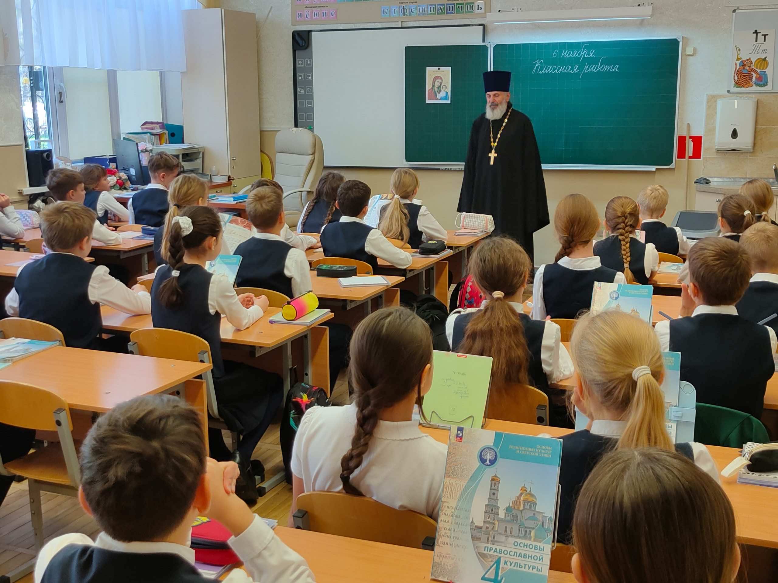 Настоятель краснодарского храма Преображения Господня протоиерей Александр Ананян провел миссионерскую встречу в школе № 52. Она была посвящена празднику Казанской иконы Божией Матери. Отец Александр побеседовал с учениками четвёртого класса, рассказал о жизни Пресвятой Богородицы, а также о том, как Она оберегает нашу страну. Ученики внимательно слушали рассказ священника и получили ответы на все интересующие вопросы.