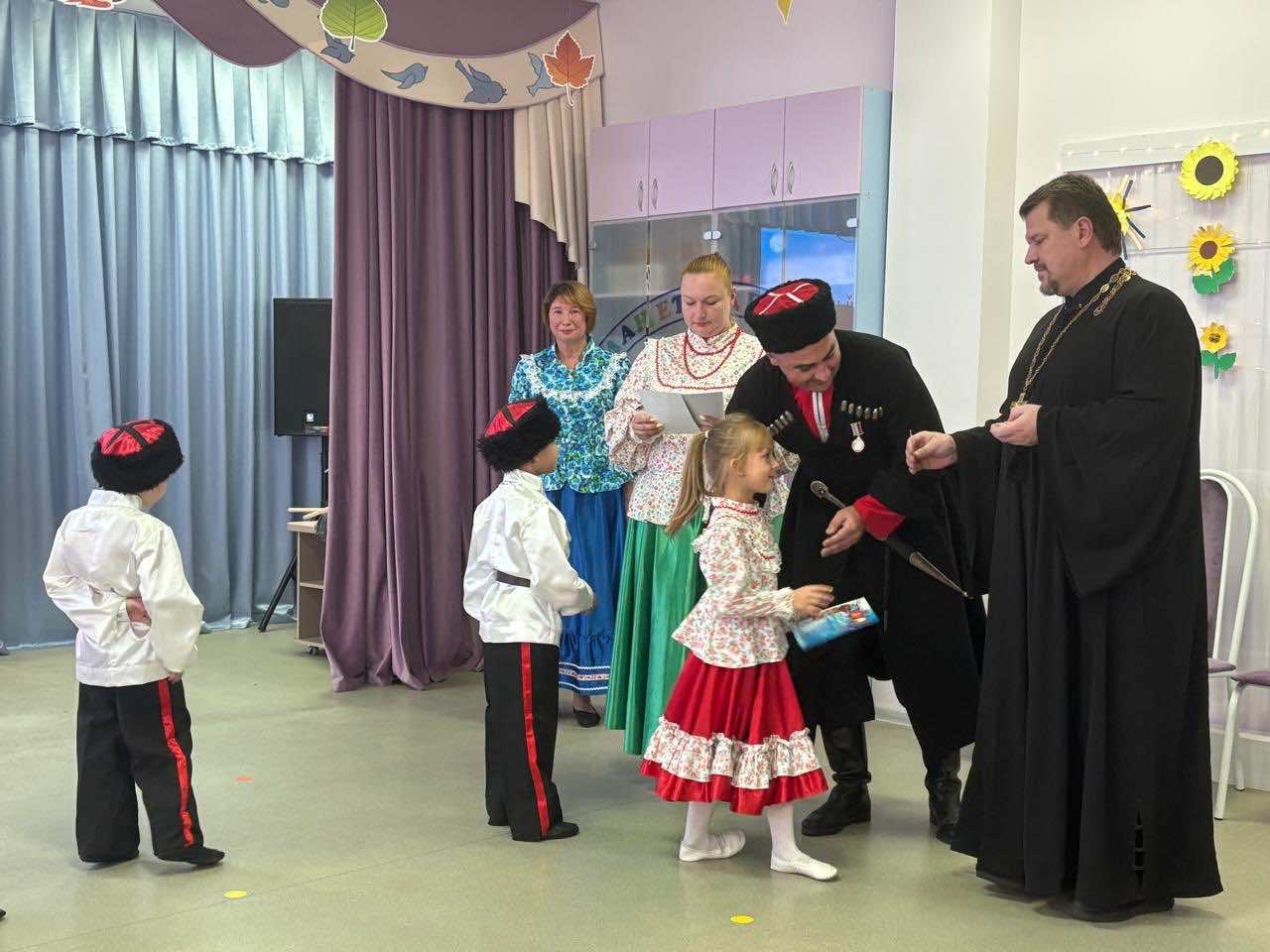 На мероприятии присутствовал настоятель храма святого Страстотерпца Царя Николая протоиерей Георгий Козак, а также почетные гости: специалист отдела анализа и поддержки дошкольного образования МКУ КНМЦ Прокофьева А. Ю. и представители хуторского казачьего общества «Старая Кубань»: казак-наставник Воробьев Д. М., казак Окунев Е. В., казак Баранцев А. А.