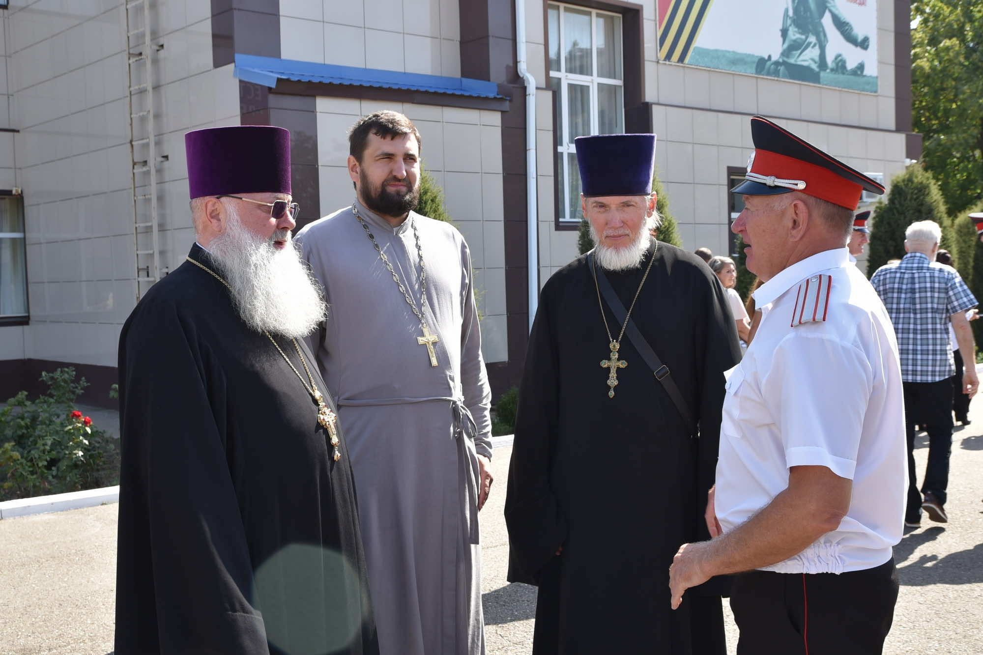 По благословению Высокопреосвященного митрополита Екатеринодарского и Кубанского Василия, 1 сентября духовник Кубанского казачьего войска и Союза казачьей молодежи, протоиерей Иоанн Гармаш посетил торжественное мероприятие, посвященное Дню Знаний, в Ейском казачьем кадетском корпусе имени атамана З.А. Чепеги.