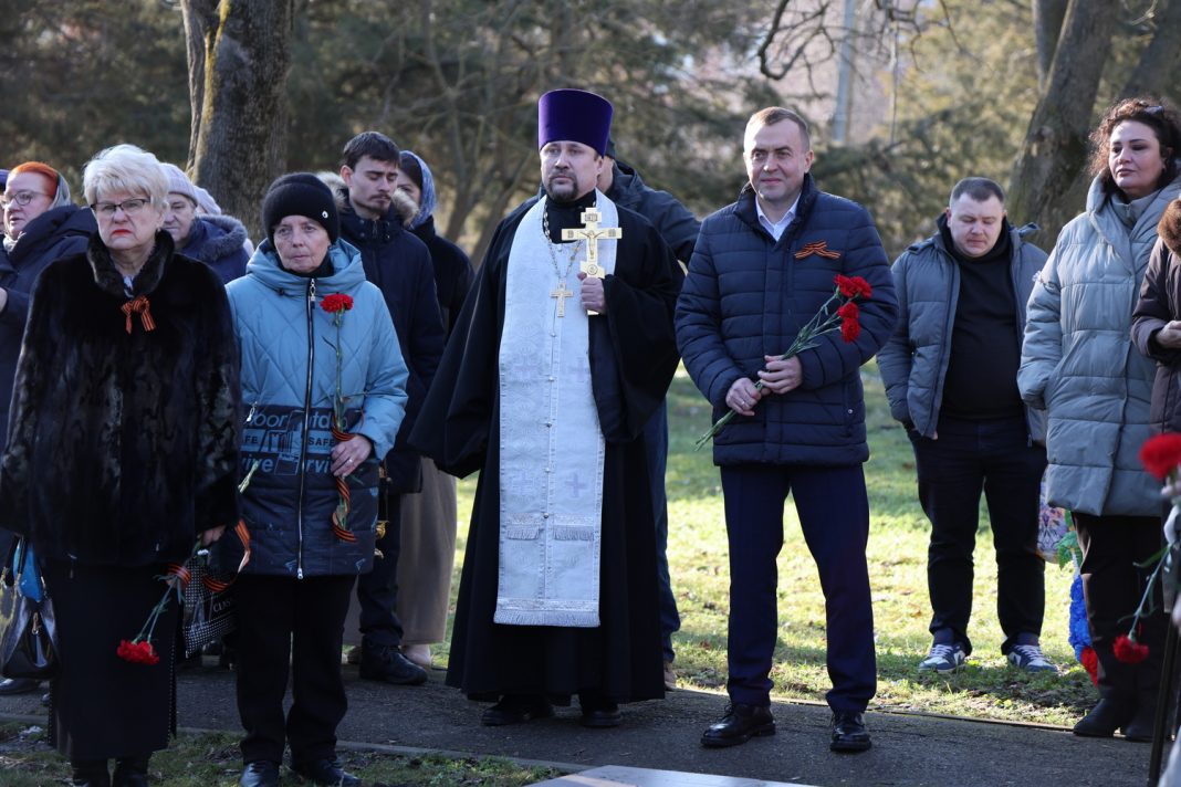 Отец Олег сказал краткое слово и возгласил Вечную память всем воинам и жителям г. Краснодара за веру и отечество жизнь свою положившим.