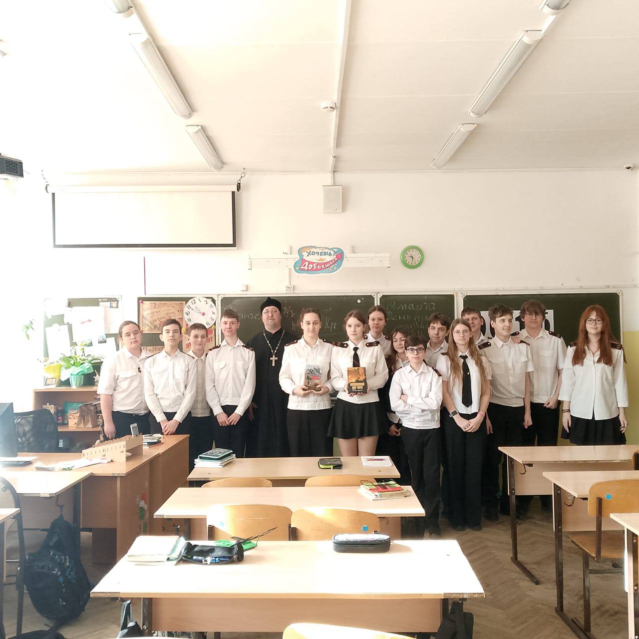 Клирик храма преподобного Илии Муромского протоиерей Роман Андропов посетил школу №16, где встретился с учащимися 8 «А» казачьего класса.