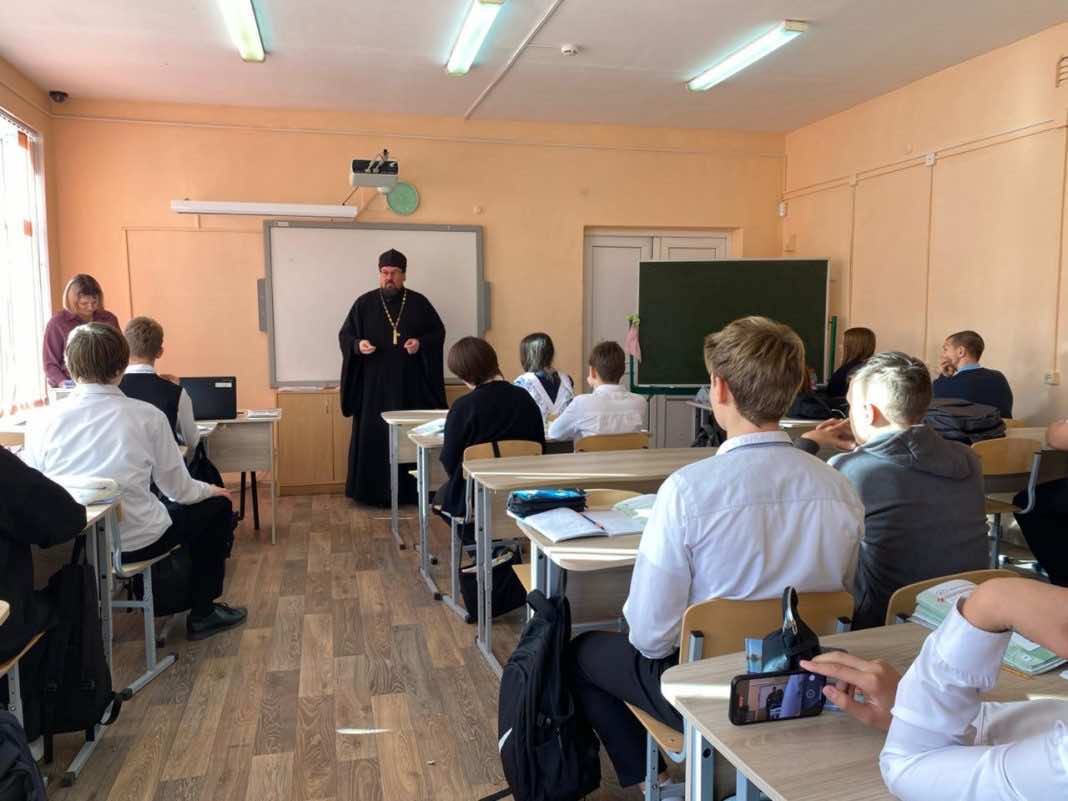 Штатный священник храма Святой Троицы станицы Динской протоиерей Сергий Покорук посетил среднюю школу №2 станицы Динской.