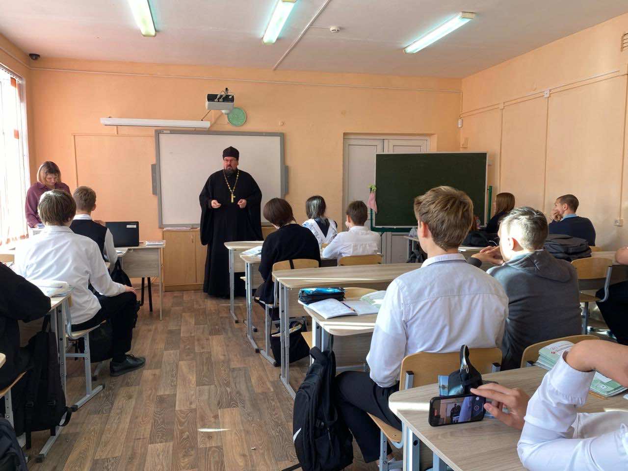 Отец Сергий провел духовно-просветительскую встречу с учениками восьмых классов. Основной темой беседы стал недавно прошедший великий праздник — Введение во храм Пресвятой Богородицы. Священник доступно и интересно рассказал школьникам о смысле этого события, о том, как юная Дева Мария была приведена в Иерусалимский храм, что символизирует этот шаг и какова его роль в истории спасения, какую помощь по молитвам Пресвятой Богородицы получают верующие люди в своей жизни.