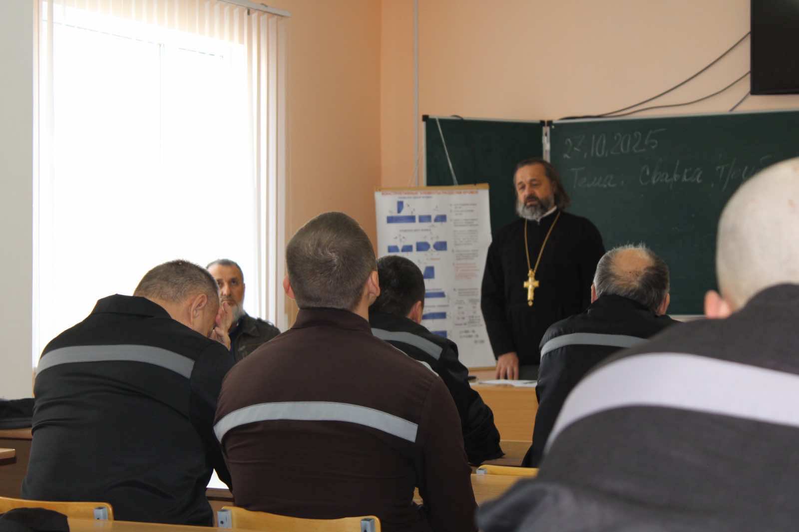 Настоятель храма Святителя Николая Чудотворца г. Краснодара протоиерей Василий Плиска посетил исправительную колонию ИК-6 в пос. Двубратский Усть-Лабинского района и провел беседу с осужденными, отбывающими наказание в данном учреждении.
