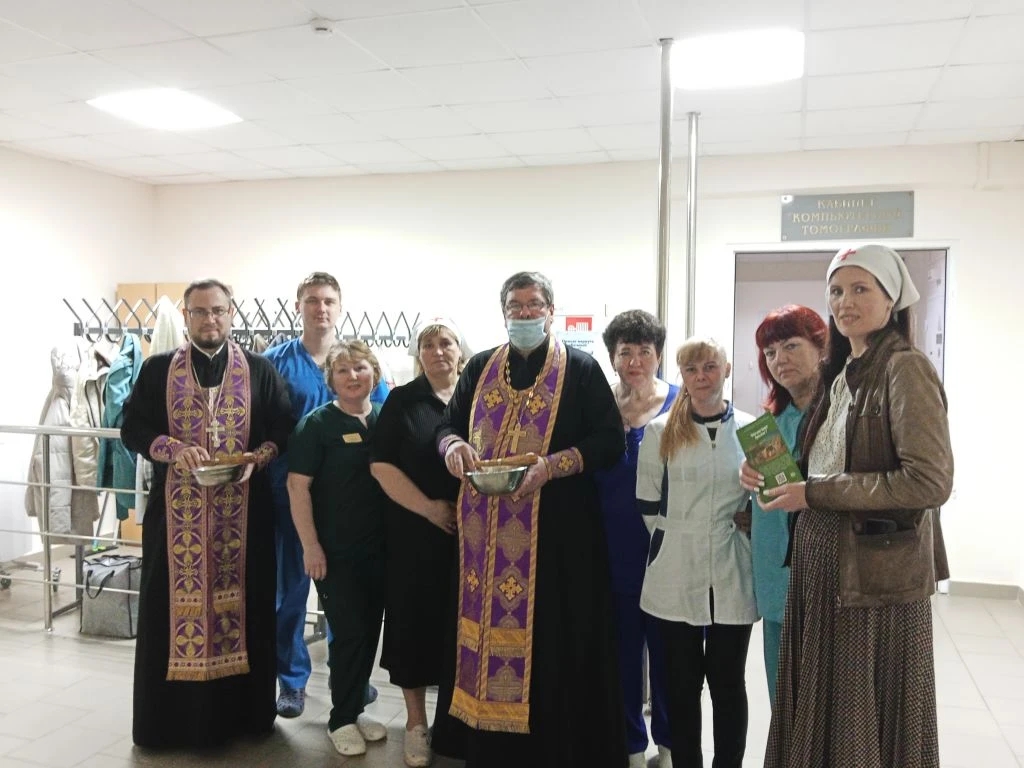 В преддверии двунадесятых праздников — Вербного Воскресения и Светлой Пасхи Христовой — помощник благочинного по социальному служению протоиерей Сергий Покорук, вместе с иереем Георгием Беланом и сестрами милосердия посетили стационар Динской центральной районной больницы.