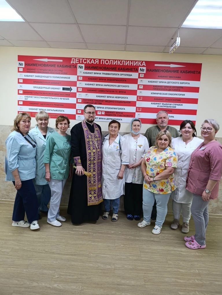 После стационара иерей Георгий Белан вместе с сестричеством посетили детскую поликлинику. Священник помолился о помощи Божией в делах и о выздоровлении тех, кто болеет, окропил кабинеты, врачей и пациентов, кто пожелал, святой водой, а сестры милосердия раздавали маленьким пациентам и их родителям православные брошюры.