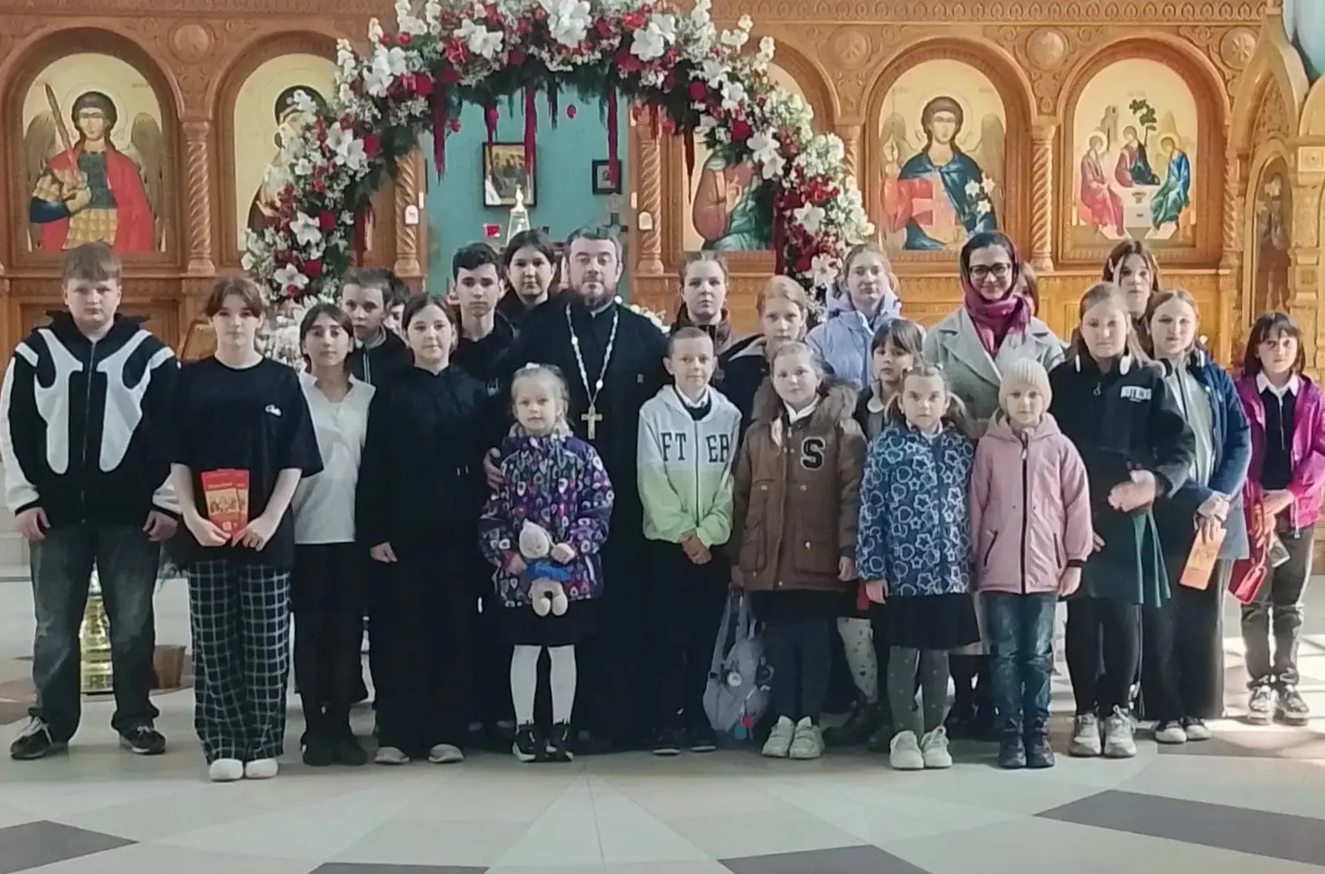 14 апреля, во вторник Светлой седмицы, учащиеся школы № 5 пос. Кутаиса посетили Свято-Троицкий храм г. Горячий Ключ. Экскурсию для гостей провел иерей Глеб Маслов, настоятель Александро-Невского храма пос. Кутаиса и духовный наставник школьников.