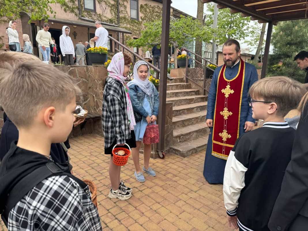 На территории храма гостей радушно встретил штатный священник храма иерей Илия Курко. Отец Илия провёл для гостей беседу, в которой рассказал о значении Праздника Светлого Христова Воскресения, его смысле для каждого христианина, о победе жизни над смертью, света над тьмой. Он объяснил, почему Пасха — это не просто историческое событие, а живая реальность, в которой мы можем участвовать и сейчас, встречая воскресшего Христа в Таинствах Церкви.