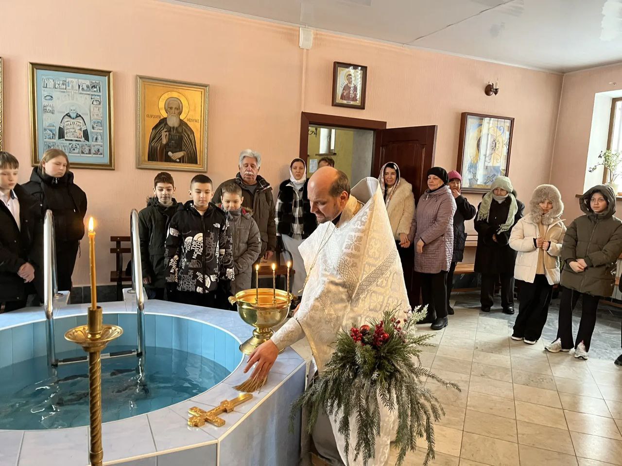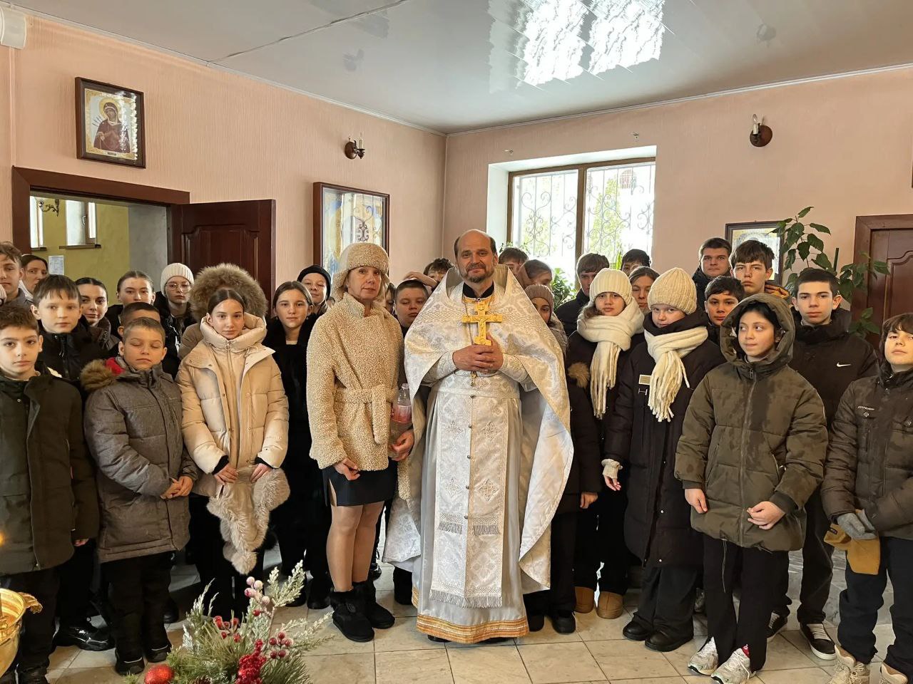 19 января, в день Крещения Господня, после Божественной литургии во время Великого освящения воды в Рождественско-Никольский храм прибыли ученики МБОУ СОШ № 30 хутора Николаенко. Настоятель храма протоиерей Сергий Головатинский рассказал детям о празднике Святого Богоявления — Крещения Господня, провёл духовную беседу и окропил детей крещенской водой.