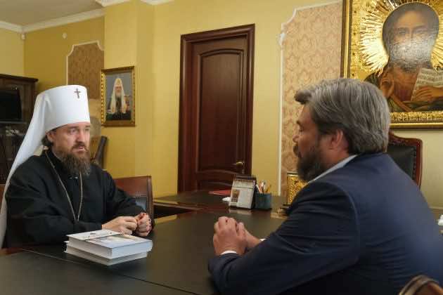 12 мая 2022 года в Екатеринодарском епархиальном управлении состоялась рабочая встреча митрополита Екатеринодарского и Кубанского Григория с заместителем главы Всемирного Русского Народного Собора, председателем Общества «Царьград» Константином Малофеевым.