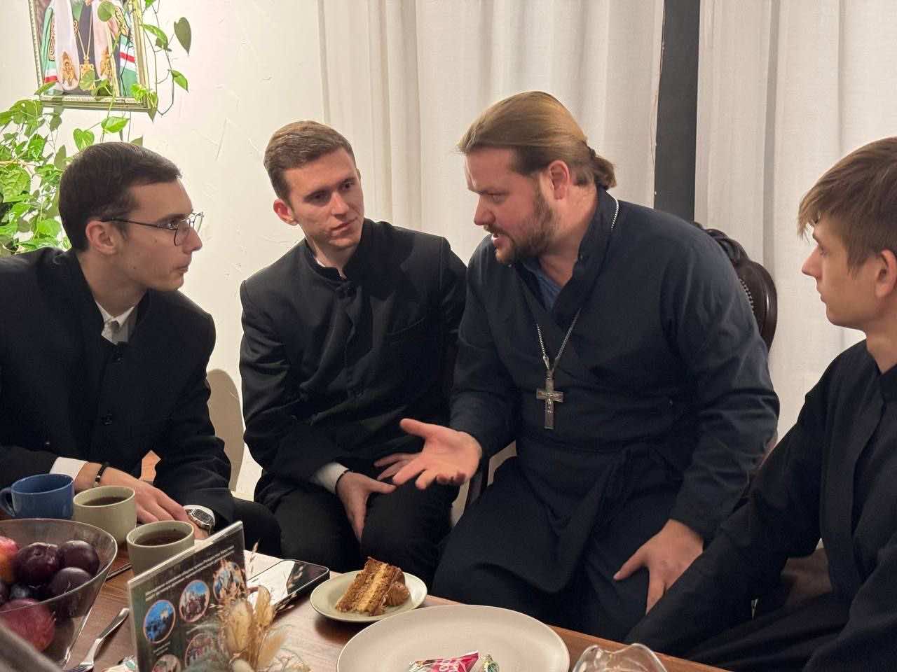 Затем, в формате чаепития с отцом Евгением участники обсудили идеи совместных мероприятий и досуга. Студенты семинарии также смогли познакомиться с членами молодежного клуба в ходе неформальных бесед.