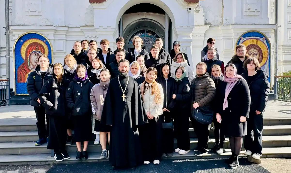 Встретил юношей и девушек настоятель храма иерей Павел Максимец. Священник рассказал гостям о храме и его святынях, упомянул о том, что наши предки-казаки построили такой величественный храм в станице, потому что твёрдо верили в Бога и хотели, чтобы казачий род умножался и наполнял этот храм.