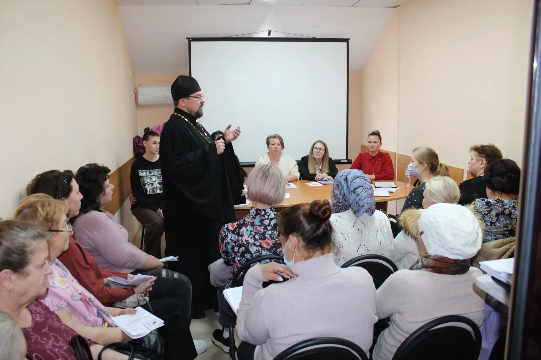 Визит был посвящен важной теме — роли заботы о гражданах, нуждающихся в уходе, в рамках системы долговременного ухода. Отец Сергий встретился с теми, кто ежедневно несет этот нелегкий крест: с родственниками, ухаживающими за своими близкими, и с сотрудниками социальных служб.В своей беседе отец Сергий обратился к евангельским истинам, напомнив, что Господь заповедал нам любовь к Богу и ближнему. «Если кто говорит, что любит Бога, но при этом не милосерден к ближнему — это ложь и самообман», — подчеркнул священник.