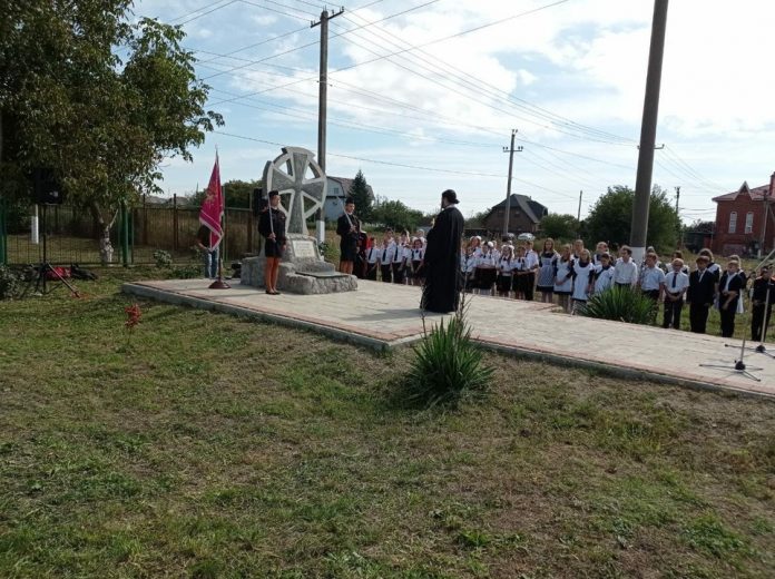 Казаки и ученики казачьих классов станицы возложили венки и цветы к поминальному кресту, установленному казаками на въезде в станицу и почтили память погибших минутой молчания.