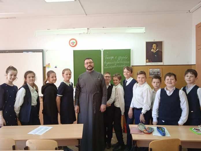 В завершении беседы отец Евгений поздравил учеников с наступающим праздником Пасхи.
