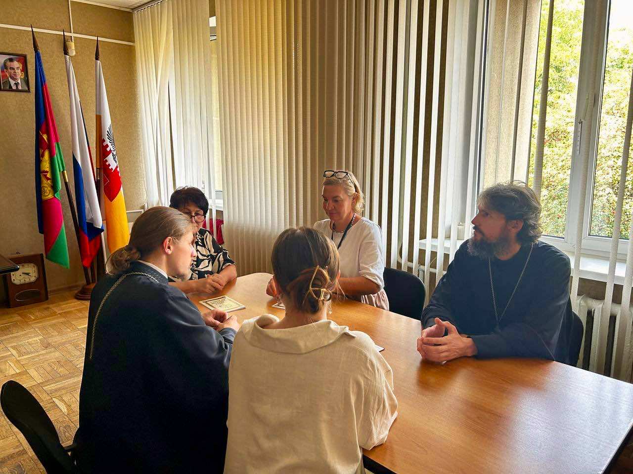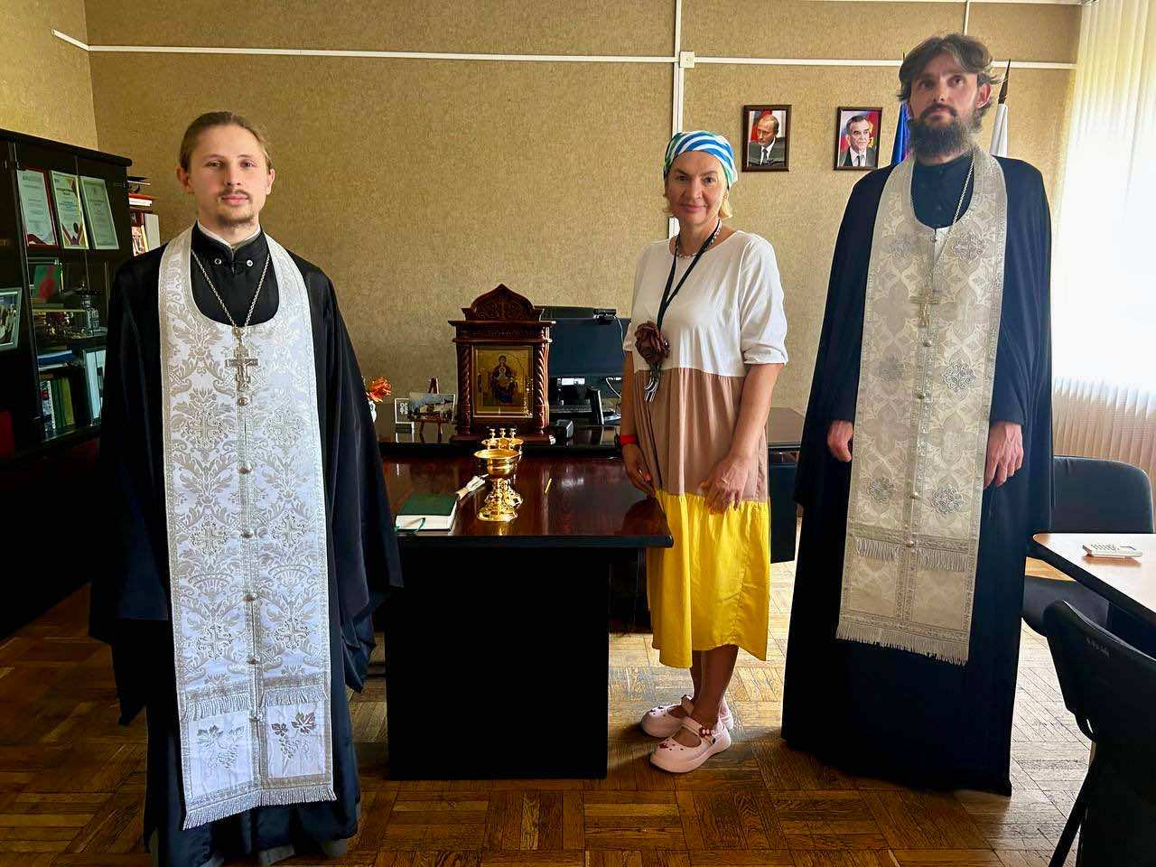В Краснодарском архитектурно-строительном техникуме в рамках празднования памяти Крещения Руси состоялась рабочая встреча администрации техникума со священнослужителями Андреевского храма г. Краснодара иереем Владиславом Зараменских и иереем Евгением Буховичем.