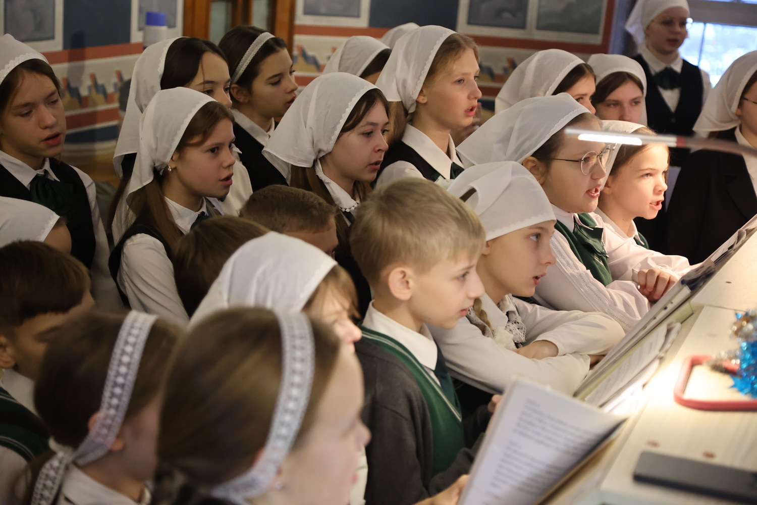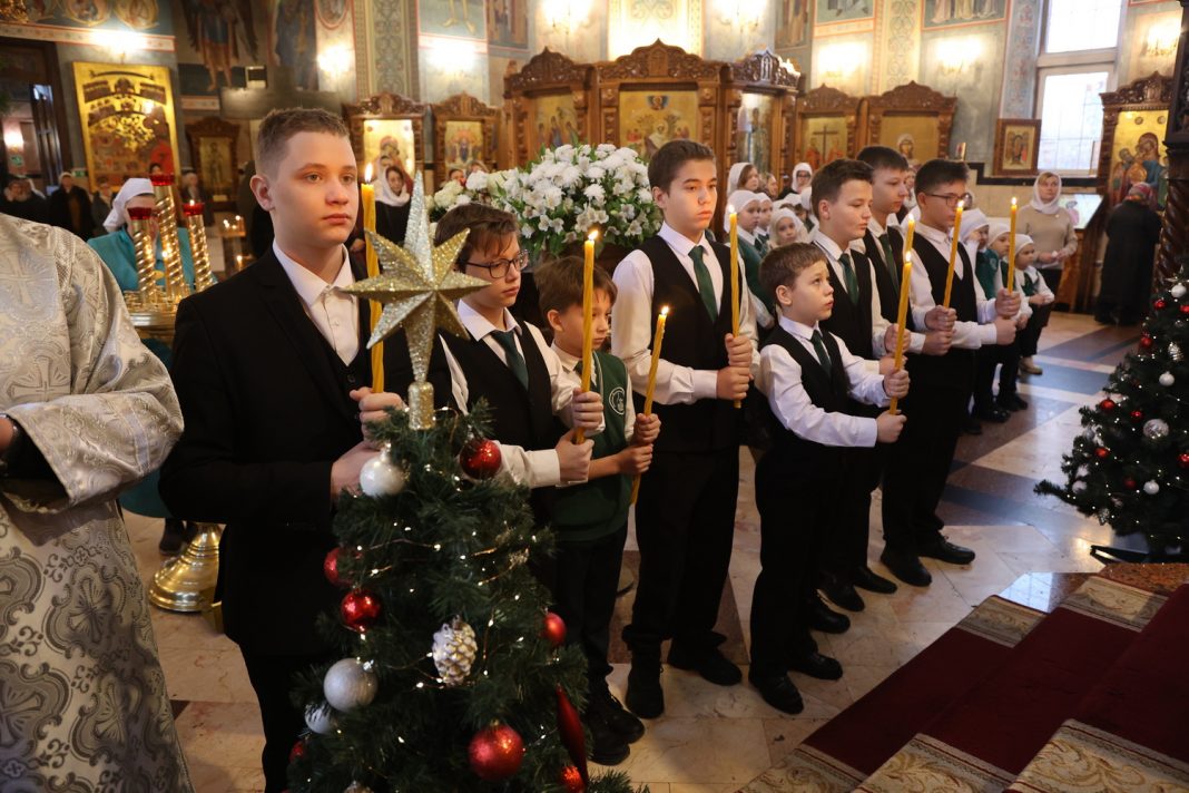 В этот день в храме Рождества Христова состоялась праздничная Божественная литургия с участием учителей, учащихся, их родителей и прихожан. Все песнопения богослужения исполнил школьный хор. Участие детского хора в Литургии является радостным и долгожданным событием для самих ребят.