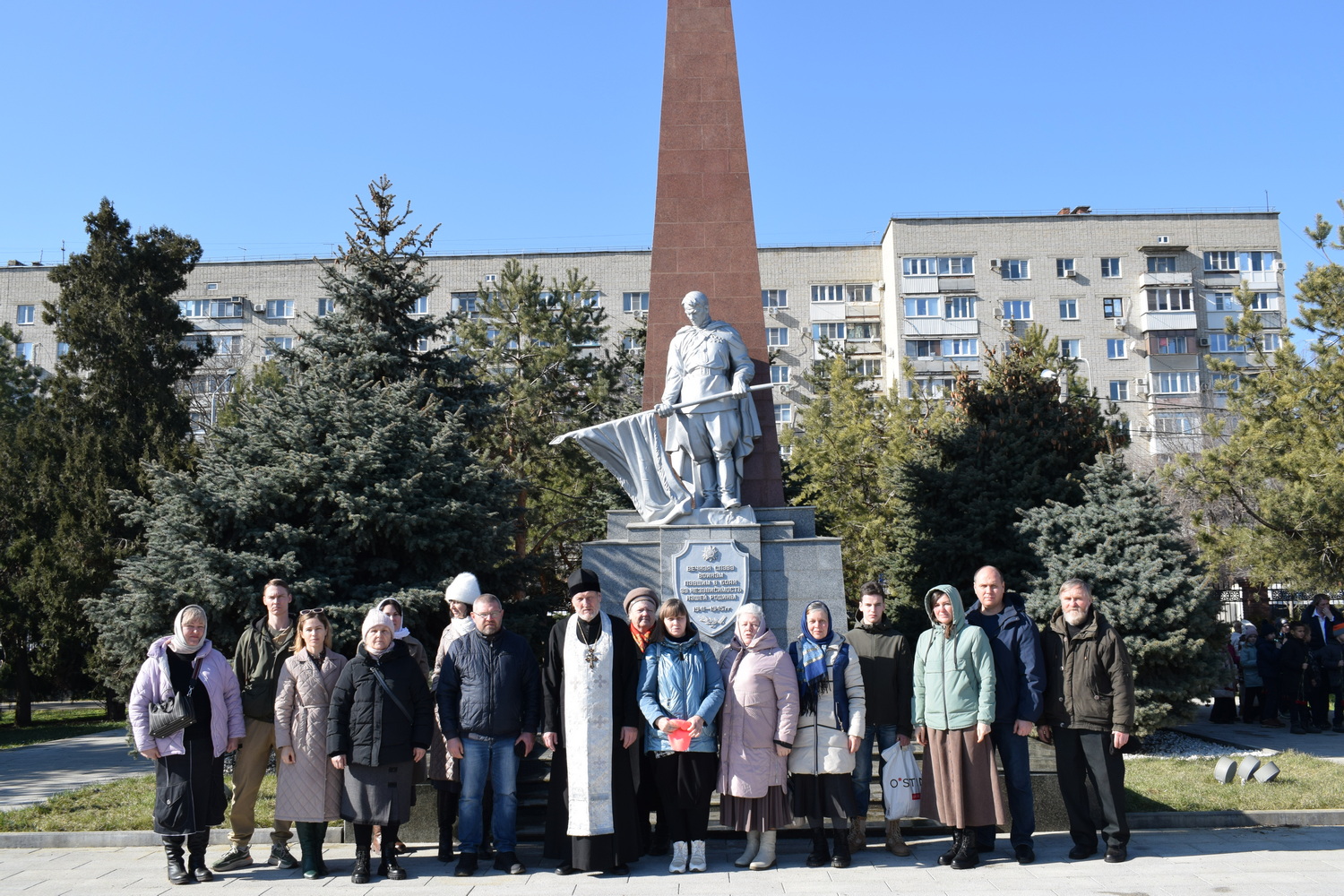 Благочинный 17-го Полтавского районного церковного округа протоиерей Сергий Рыбкин напомнил исторические факты о Малоземельском десанте, о битве за Кавказ, о трудовом подвиге советского народа, работавшего под лозунгом «Всё для фронта, всё для Победы!»