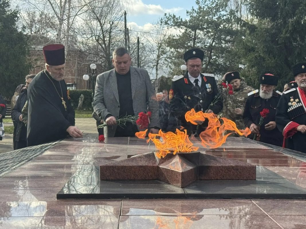 В станице Новомышастовской митинг прошел днем ранее — станица была освобождена 19 февраля. 20 февраля отряд памяти вознес молитву у братского захоронения бойцов-освободителей вместе с настоятелем храма Архангела Гавриила протоиереем Никитой Кузнецовым и прихожанами. Участники посетили музей истории, где узнали о ходе боев за освобождение Новомышастовского поселения.