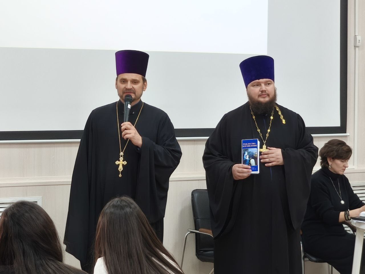 После финальных вопросов к участникам обратился почётный гость — благочинный 11-го Белореченского районного благочиннического округа протоиерей Сергий Головатинский. В своём обращении отец Сергий акцентировал внимание на важности личной встречи каждого человека с Богом, Спасителем нашим Иисусом Христом, через веру, надежду и любовь. Участникам и гостям были предложены для ознакомления буклеты, раскрывающие глубокий духовный смысл праздников Рождества Христова и Богоявления.