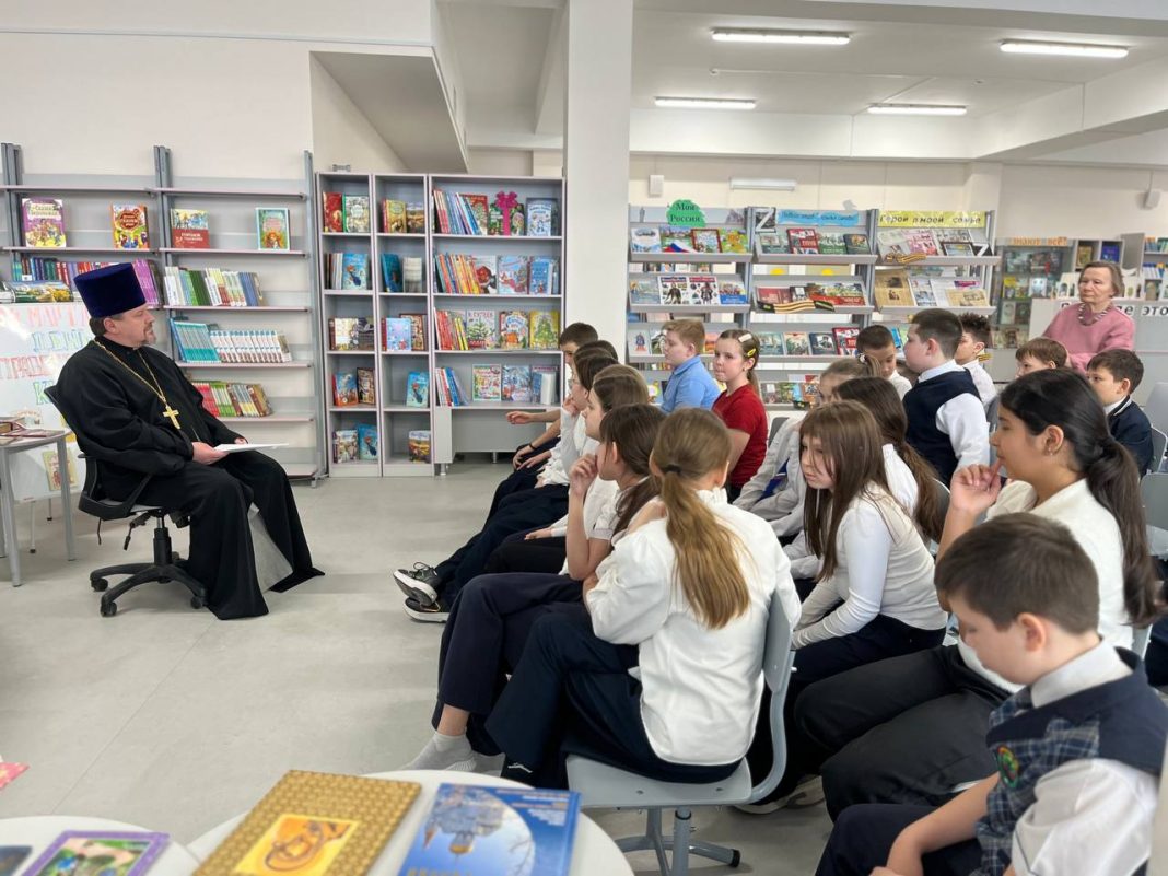 В рамках празднования Дня православной книги настоятель храма прмц. вел. кн. Елисаветы протоиерей Георгий Козак посетил библиотеку СОШ № 111. На встречу с ним пришли ученики 4-х классов, для которых была организована душеполезная и очень актуальная беседа.