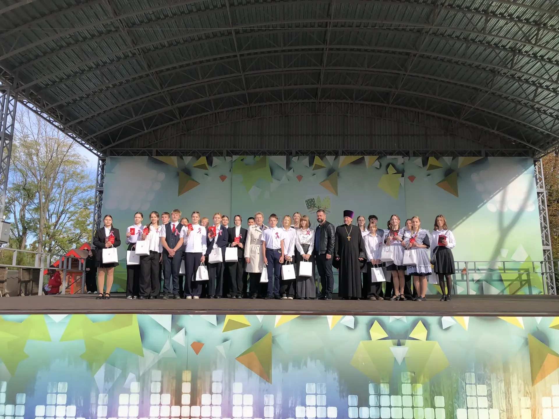 Особую значимость этому событию придало обращение помощника благочинного по миссионерской работе иерея Александра Коваленко. Священник, обращаясь ко всем собравшимся и особенно к молодежи, только что получившей главный документ в жизни, подчеркнул глубокую связь между историческим подвигом предков и личной ответственностью каждого гражданина.