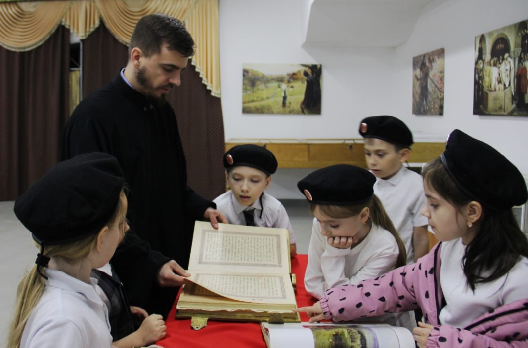 Отец Глеб рассказал ребятам о том, как создавались первые рукописные книги, какую роль сыграл первопечатник Иван Фёдоров, и почему православная книга считается источником мудрости и добра. В ходе живого диалога школьники узнали о главных книгах христиан — Библии и Евангелии, а также о современных изданиях, которые учат милосердию, состраданию и любви к ближнему.