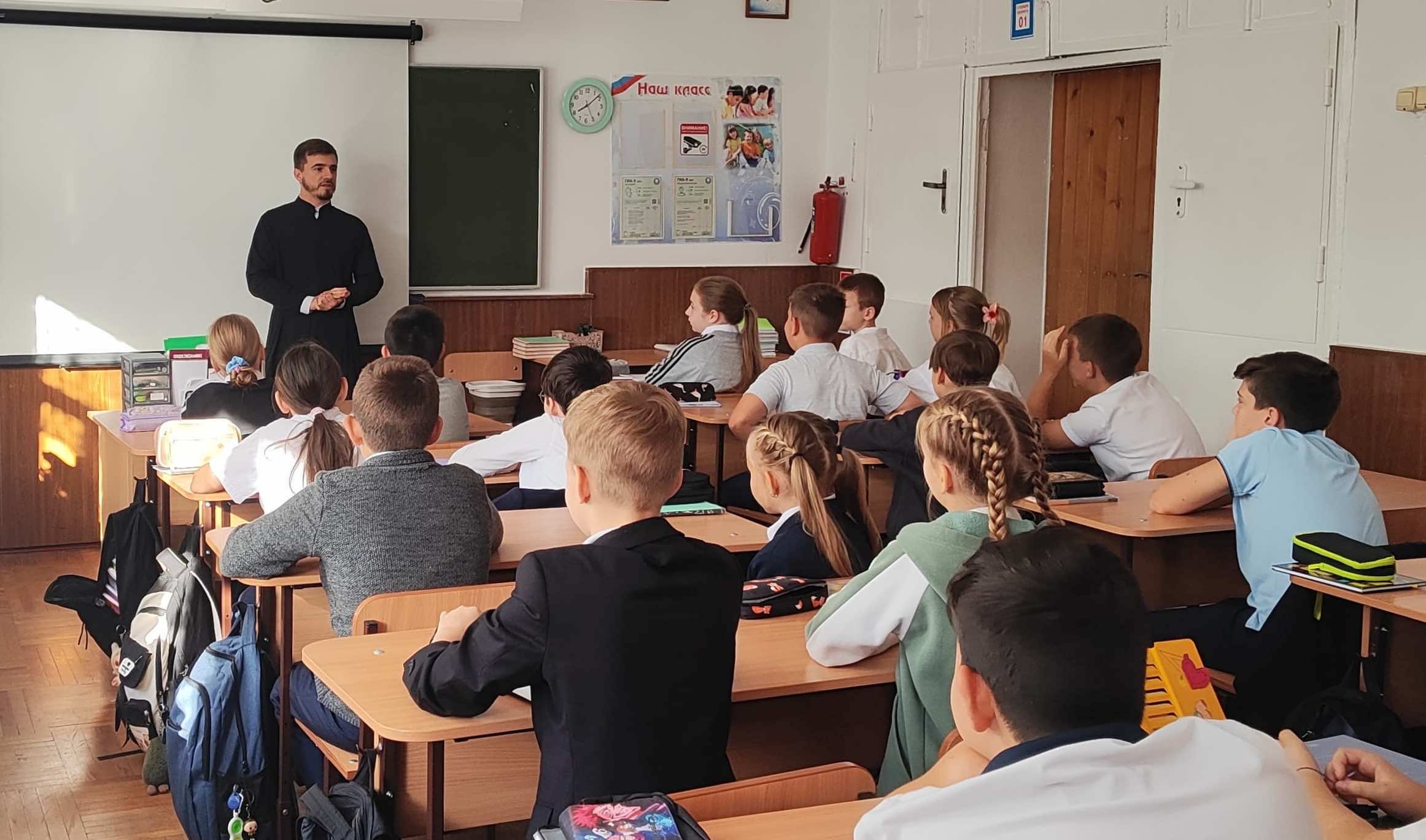 17 сентября штатный диакон Троицкого храма г. Горячий Ключ отец Илия Мигалко провел урок для учащихся пятого класса МБОУ СОШ №1.