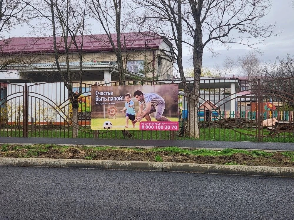 К празднику Благовещения Пресвятой Богородицы в Горячем Ключе появились баннеры от АНО  «Спаси жизнь» в поддержку Указа Президента РФ от 09.11.2022г. «Об утверждении Основ государственной политики по сохранению и укреплению традиционных российских духовно-нравственных ценностей». Социальная реклама размещена на оградах детских садов в местах, где ежедневно ее может увидеть большое количество людей.