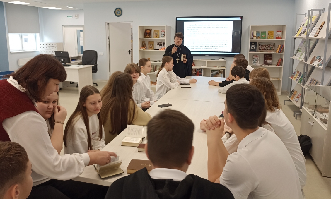 26 марта в МБОУ СОШ № 3 состоялась встреча, посвященная Дню православной книги. По приглашению библиотекаря Натальи Александровны Соболевой для учащихся восьмого класса урок провели штатный священник Троицкого храма г. Горячий Ключ иерей Виталий Бабенков и помощник благочинного по издательской работе Наталья Бабенкова.