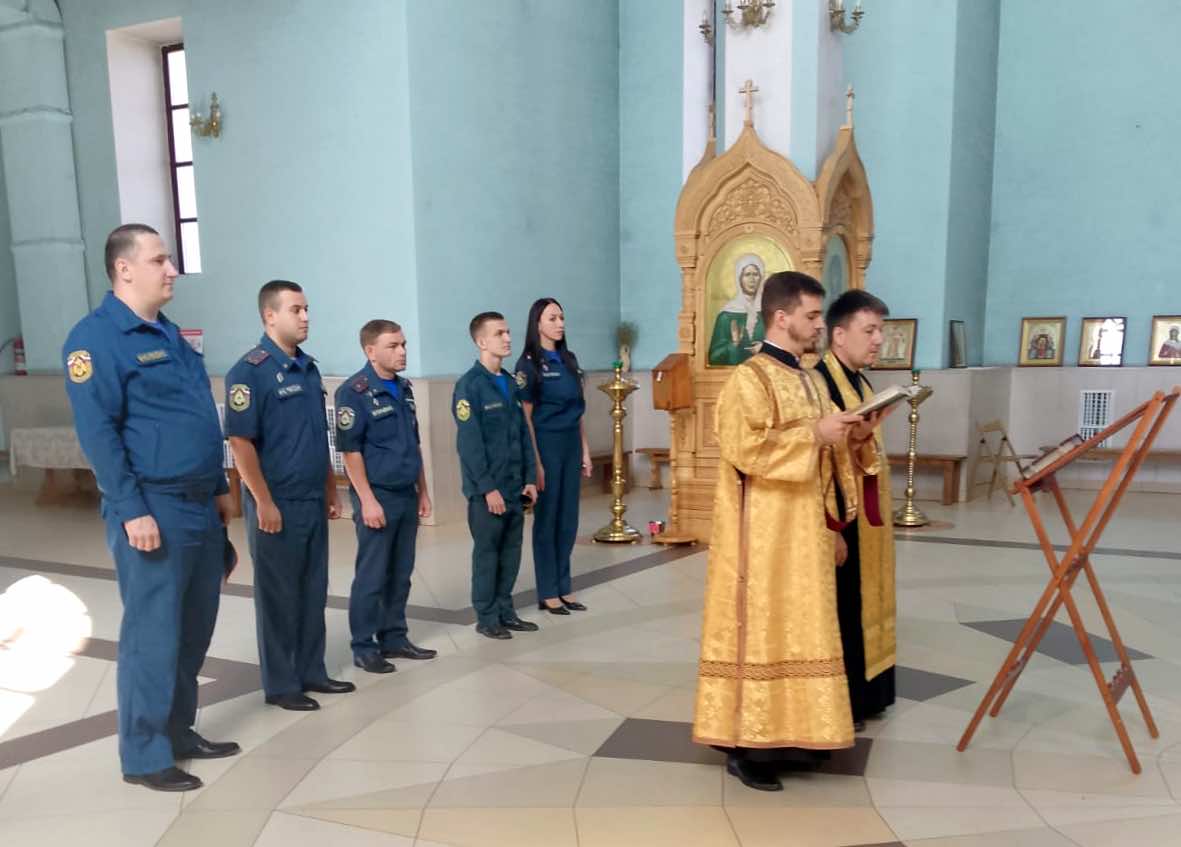После богослужения отец Виталий поздравил сотрудников МЧС и пожелал им помощи Божией и заступничества Пресвятой Богородицы в их опасной работе.