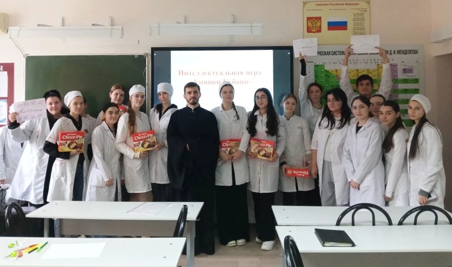 Будущие медики ответили на вопросы четырех туров, в том числе музыкального. В финале определились команды-победители, которые получили сладкие призы от Троицкого храма.