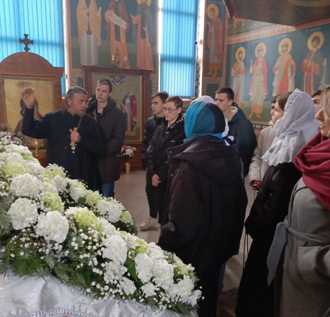 Также учащиеся узнали об устройстве и символике православного храма. Отец Виктор рассказал, что этот храм освящён в честь святителя Тихона, Патриарха Московского и всея Руси, и является частью большого Покровского прихода.