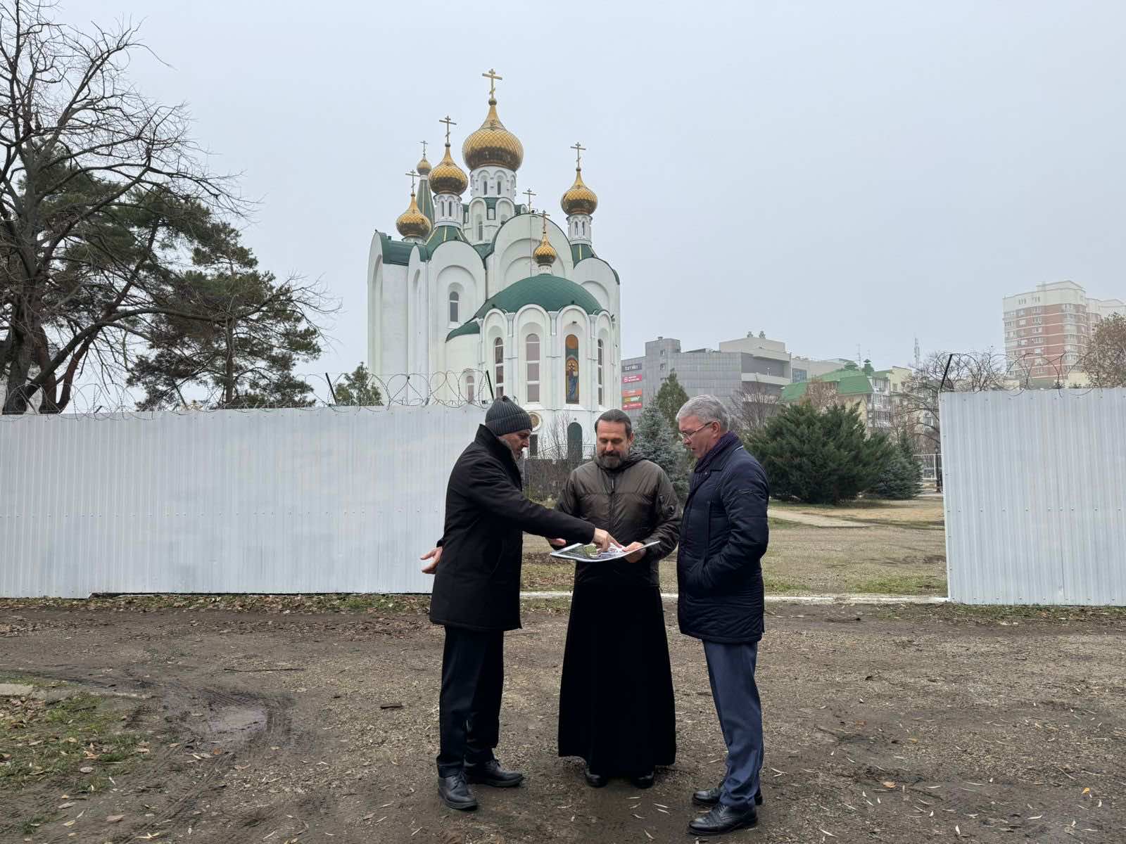 Храм Святого Духа посетили депутат Государственной думы Эдуард Анатольевич Кузнецов и депутат Законодательного Собрания Краснодарского края Игорь Самуилович Брагарник с целью осмотра прилегающей к храму территории, где планируется строительство православной гимназии.
