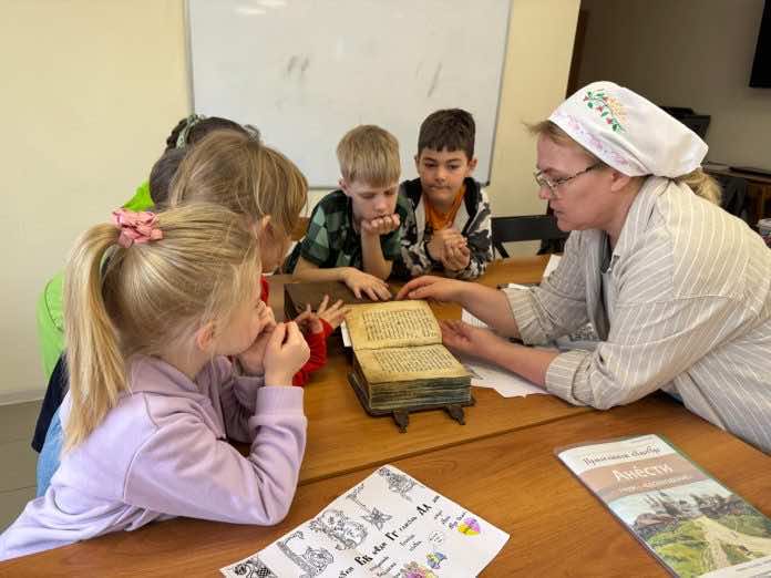 В завершение занятий дети раскрасили старинные буквицы и даже попробовали свои силы в чтении текста Библии 1891 года на церковнославянском языке.