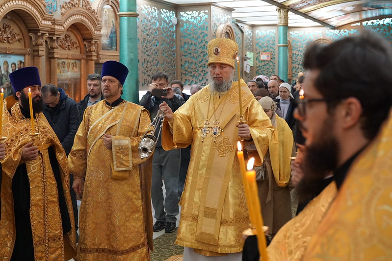 Его Высокопреосвященству сослужили: иерей Рафаил Резниченко, протоиерей Димитрий Ветошкин, иеромонах Корнилий (Иванов), иерей Андрей Кретов, иерей Александр Ливенский, иеромонах Александр (Дерягин), иеромонах Даниил (Дерягин), иерей Вячеслав Миронов, иерей Владимир Метелёв, диакон Андрей Тесля, протодиакон Михаил Околот, диакон Никита Мельничук, диакон Марк Черных.