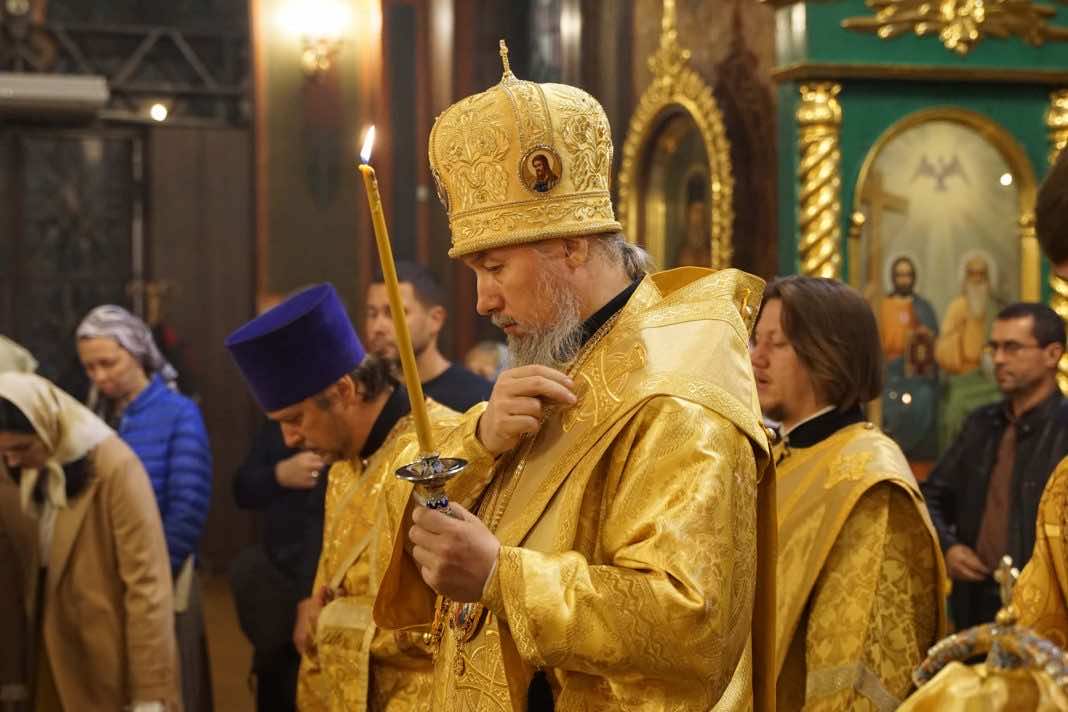 Вечером, 8 ноября 2025 года, в канун Недели 22-ой по Пятидесятнице митрополит Екатеринодарский и Кубанский Василий совершил Всенощное бдение в Свято-Троицком соборе города Краснодара.