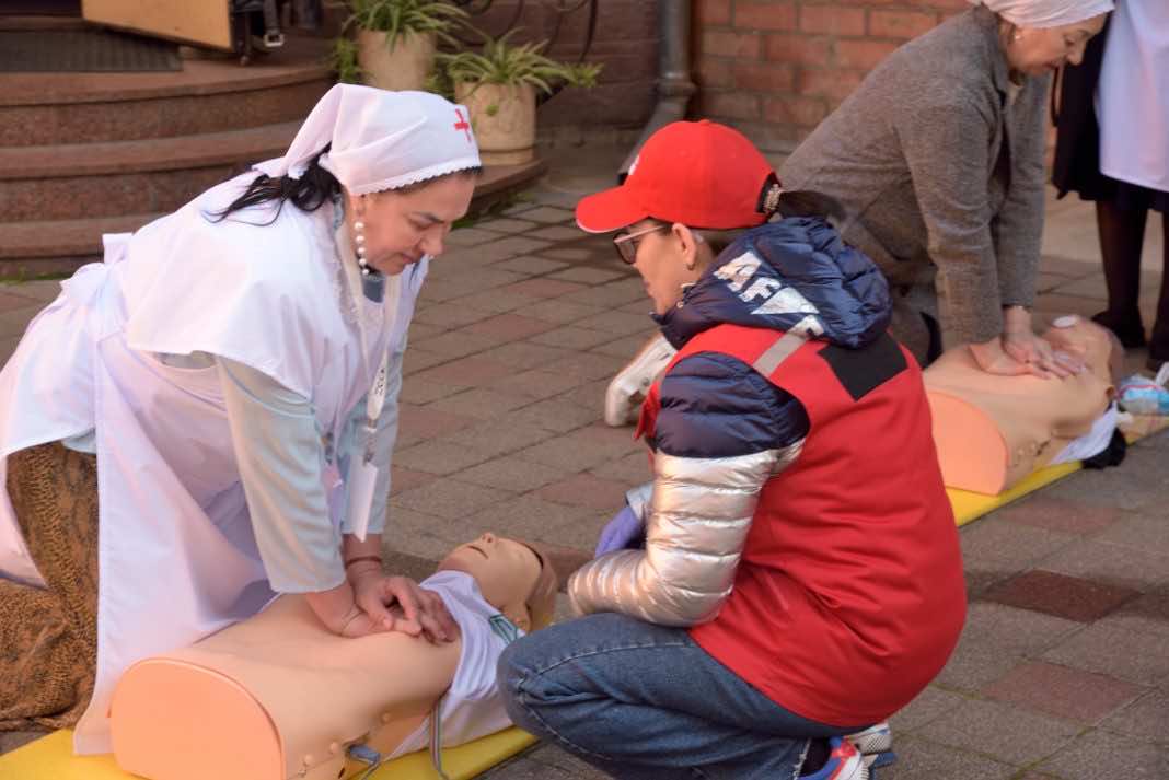 В первый день сестры отрабатывали навыки оказания доврачебной помощи пациентам с сердечно-сосудистыми заболеваниями. Во дворе храмовой территории для занятий уже были готовы манекены, на которых и можно было практиковаться запускать сердце. Под руководством инструкторов каждая сестра и каждый брат милосердия смогли приобрести новый навык.