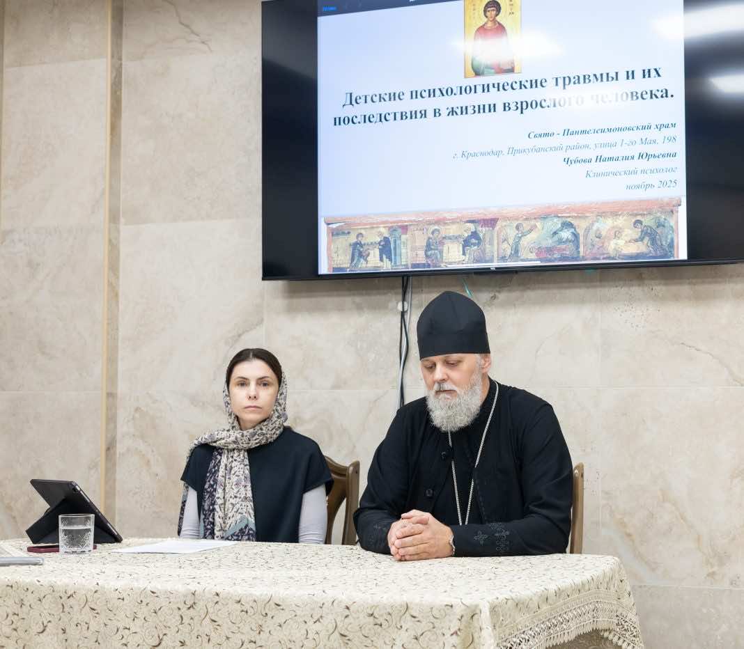 2 ноября 2025 г. в храме великомученика и целителя Пантелеимона г. Краснодара в рамках просветительской деятельности Общества православных медицинских работников Краснодарского края им. свт. Луки (Войно-Ясенецкого) состоялась лекция на актуальную тему: «Детские психологические травмы и их последствия в жизни взрослого человека».