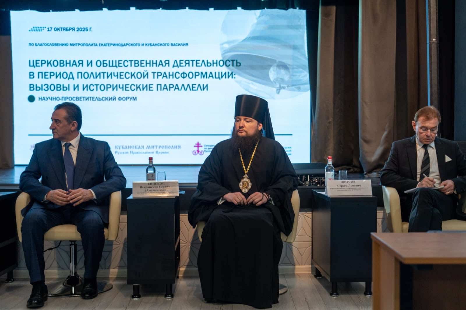 В Краснодарском государственном институте культуры сегодня, 17 октября, прошел научно-просветительский форум «Церковная и общественная деятельность в период политической трансформации: вызовы и исторические параллели». В рамках форума представители духовенства и образовательной сферы обсудили современное влияние церкви на общество.